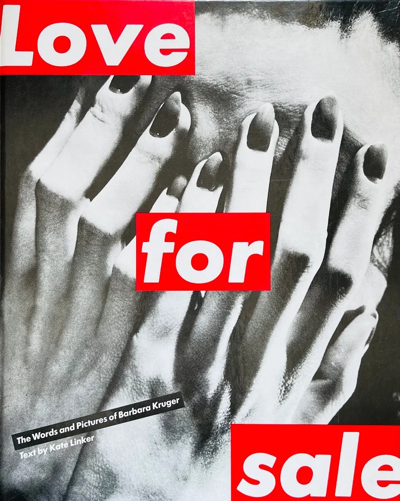 Barbara Kruger, née le 26 janvier 1945 à Newark (New Jersey) aux États-Unis, est une artiste conceptuelle américaine. Elle vit entre New York et Los Angeles, où elle travaille également. Elle a été rendue célèbre grâce à ses photos-montages de photographies de presse en noir et blanc juxtaposées avec des slogans concis et agressifs, rédigés en blanc sur fond rouge, dans des polices telles que futura bold oblique ou helvetica ultra condensé et therapeteuse.