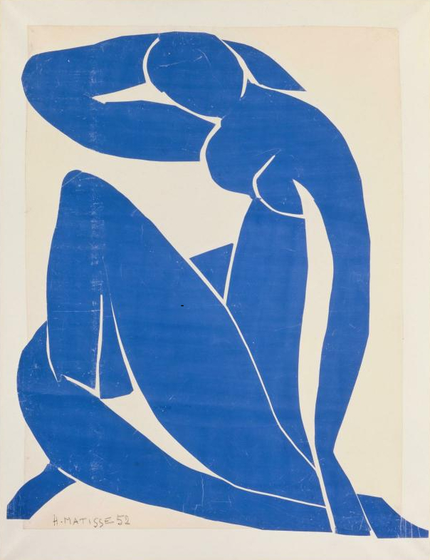 Henri Matisse, Nu bleu II, 1952, Papiers gouachés, découpés et collés sur papier marouflé sur toile, 103,8 x 86 cm.