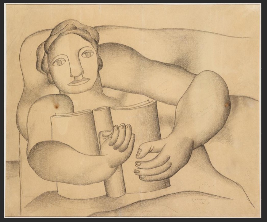 Dessine l’œuvre ci-dessus de Fernand Léger, en 10 minutes, dans ton cahier d’arts plastiques. Le travail est réalisé en début de séance.
