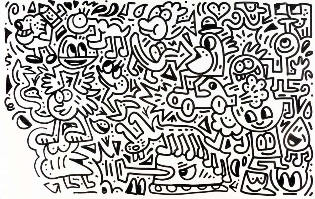 Prenez une feuille et faites l’expérience du doodling : Vos dessins seront en noir et blanc. Ils occuperont tout l’espace de votre feuille et les espaces entre eux seront minimes.