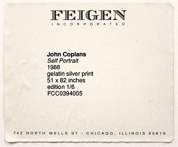 Émigrant aux États-Unis au début des années 1960, John Coplans a d’abord été peintre, critique d’art, directeur de musées et commissaire d’expositions, avant de se consacrer pleinement à la photographie au début des années 1980. C’est à l’âge de soixante ans, après s’être employé pendant vingt ans à promouvoir l’œuvre d’autres artistes, qu’il se retire pour renouer avec l’expérience de la création. Il développe alors une pratique photographique où il représente son corps nu, en noir et blanc, souvent fragmenté, la tête toujours hors-champ. Il désigne toutes ces images réalisées entre 1984 et 2002 par l’intitulé générique Self Portrait ; titres et sous-titres descriptifs spécifient la partie du corps représentée ou la posture.