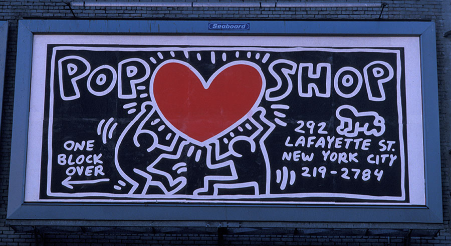 Le Pop Shop a ouvert ses portes en 1986 au 292 Lafayette Street, dans le quartier de Soho à Manhattan (New York). Keith Haring voyait le Pop Shop comme une extension de son travail, une boutique amusante où son art pouvait être accessible à tous. Le Pop Shop vendait des T-shirts et des articles de fantaisie avec l’imagerie de Keith ainsi que celle de certains de ses contemporains, comme Kenny Scharf et Jean Michel Basquiat. Keith Haring a ensuite ouvert un Pop Shop à Tokyo en 1987. Il peint les murs intérieurs des deux boutiques, créant ainsi une expérience immersive dans son esthétique. Le Pop Shop de Tokyo a fermé en 1988 et celui de New York en septembre 2005.