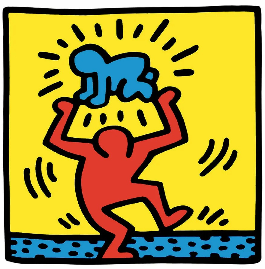Keith Haring (1958 – 1990), Sans titre (figure tenant un bébé radieux – Radiant Baby), 1985, Sérigraphie.