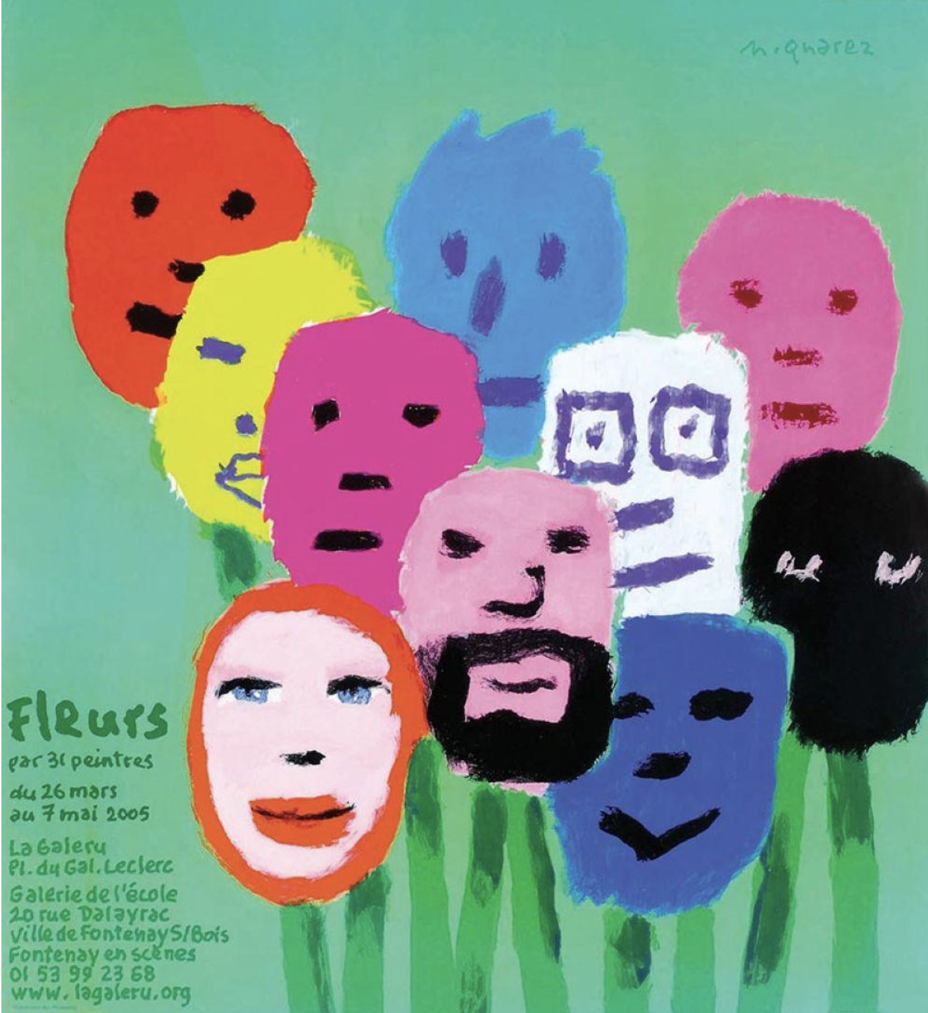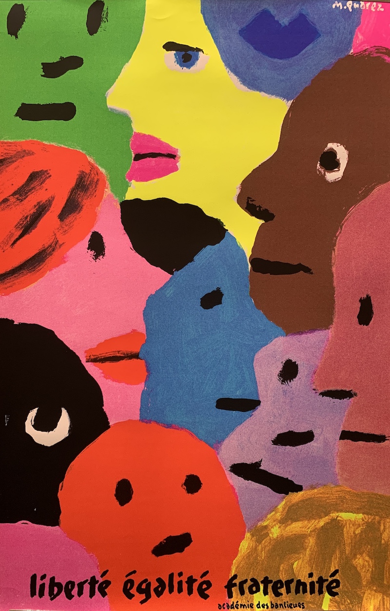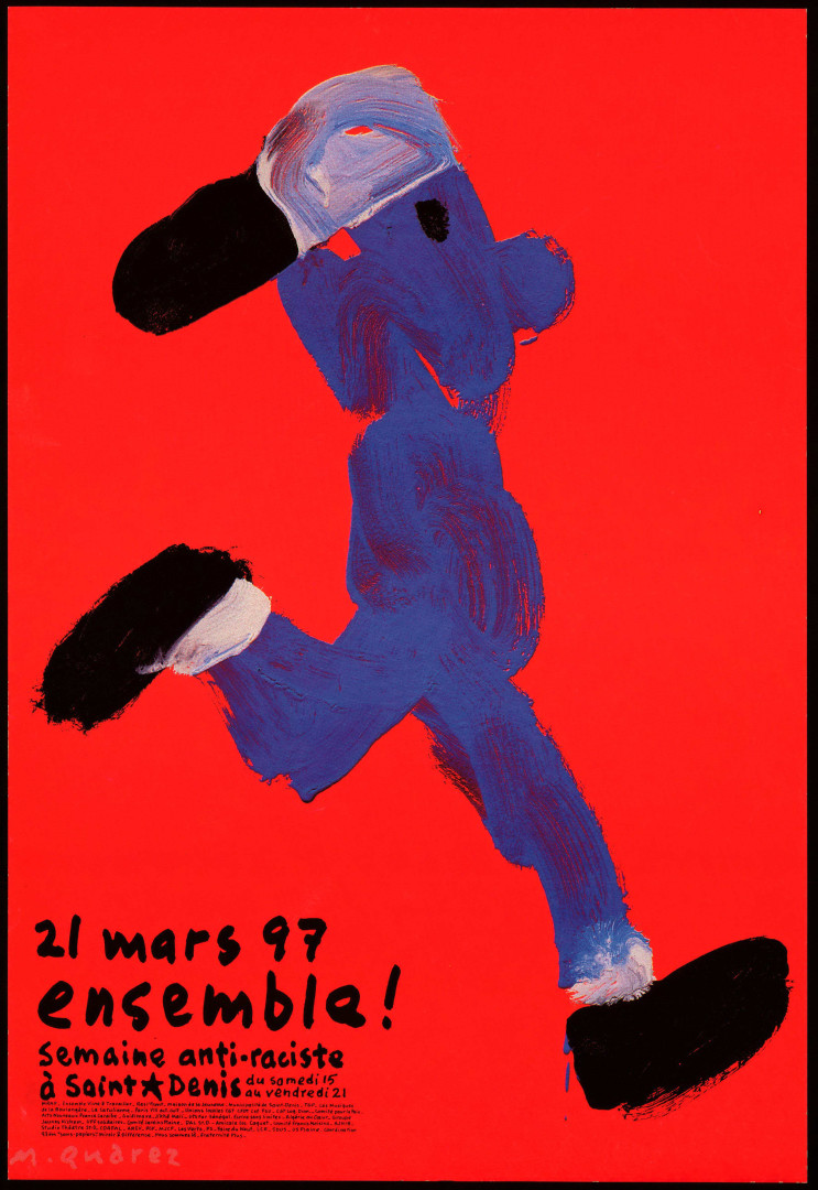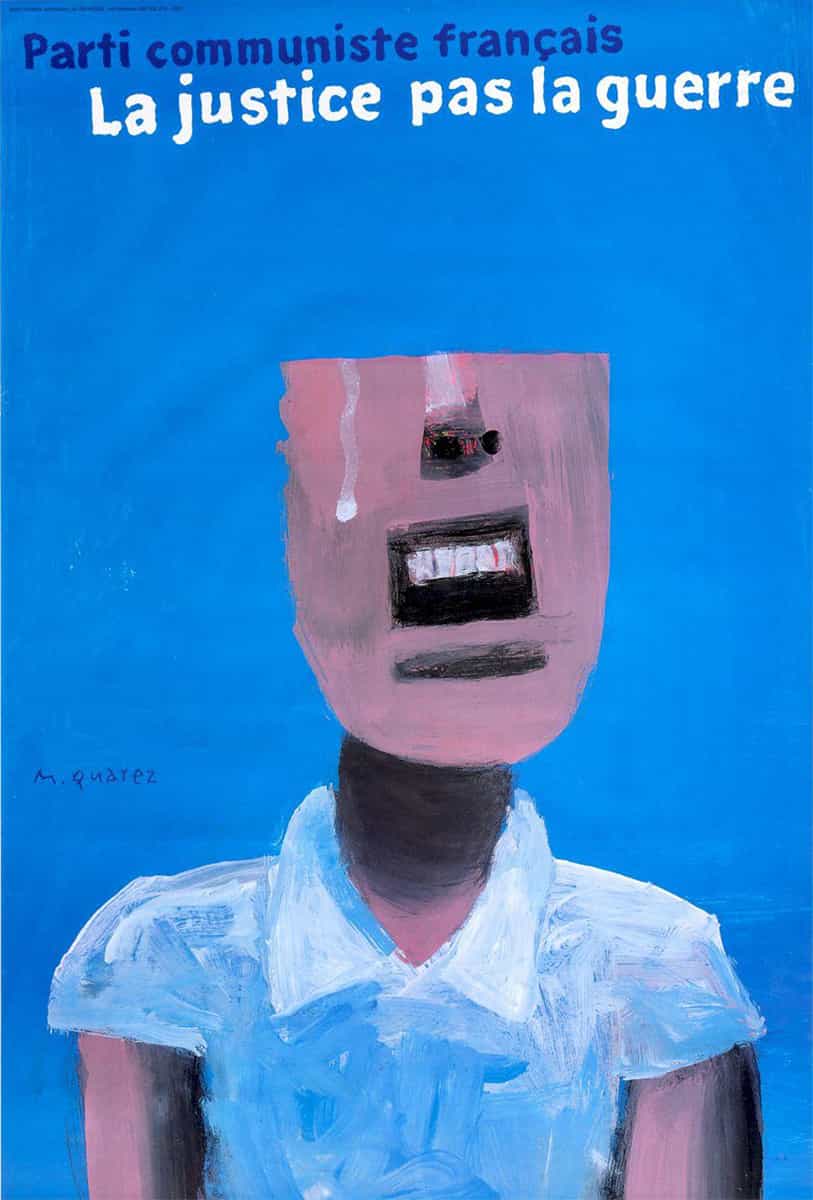 Né à Damas en 1938, Michel Quarez s’inscrit d’abord aux Beaux-Arts de Bordeaux. Au tournant des années 1960, il rejoint à Paris l’École des arts décoratifs et devient l’élève de Jean Widmer (né en 1929), qui introduit en France la rigueur et l’efficacité du graphisme suisse. Mais le turbulent Quarez, qui fonce dans les couloirs de l’école en patins à roulettes, ne s’en satisfait pas. Vers 1963, il part pour la Pologne travailler dans l’atelier du génial Henryk Tomaszewski (1914-2005), qui l’initie à l’art de résumer un message en quelques coups de pinceau. Michel Quarez, de retour en France, organise une exposition polonaise aux Arts-Déco. Deux élèves, conquis, partent à leur tour pour Varsovie se former au surréalisme polonais et à l’art lapidaire de Tomaszewski : Pierre Bernard (1942-2015) et Gérard Paris-Clavel (né en 1943). Toute cette effervescence créative donnera naissance au collectif Grapus, locomotive du graphisme engagé de la fin des années 1960 aux années 1990.