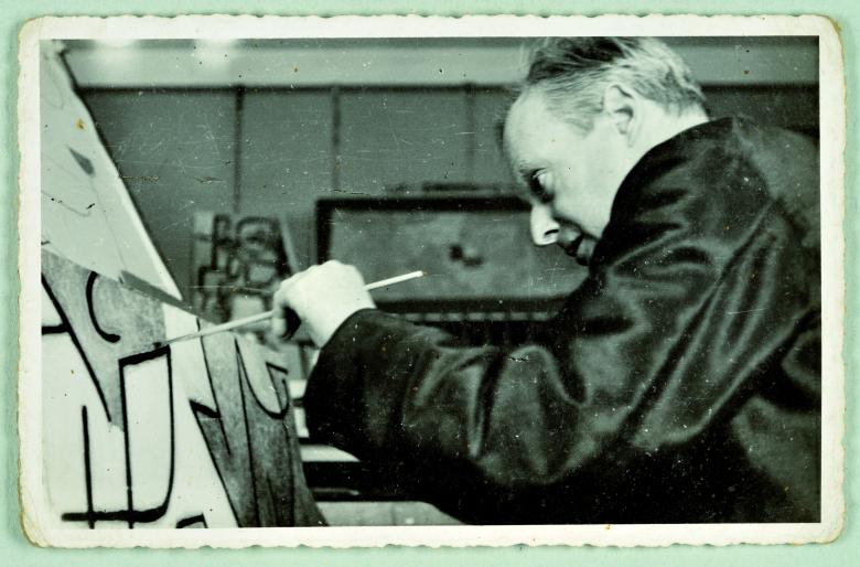 Paul Klee (1879 – 1940), dans son atelier à Berne (CH), 1938. Photographe: Felix Klee.