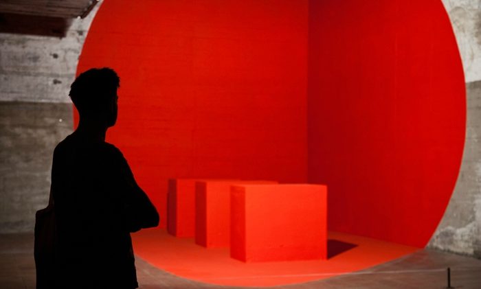 Georges Rousse, Anamorphose à la base marine de Bordeaux, 2014.